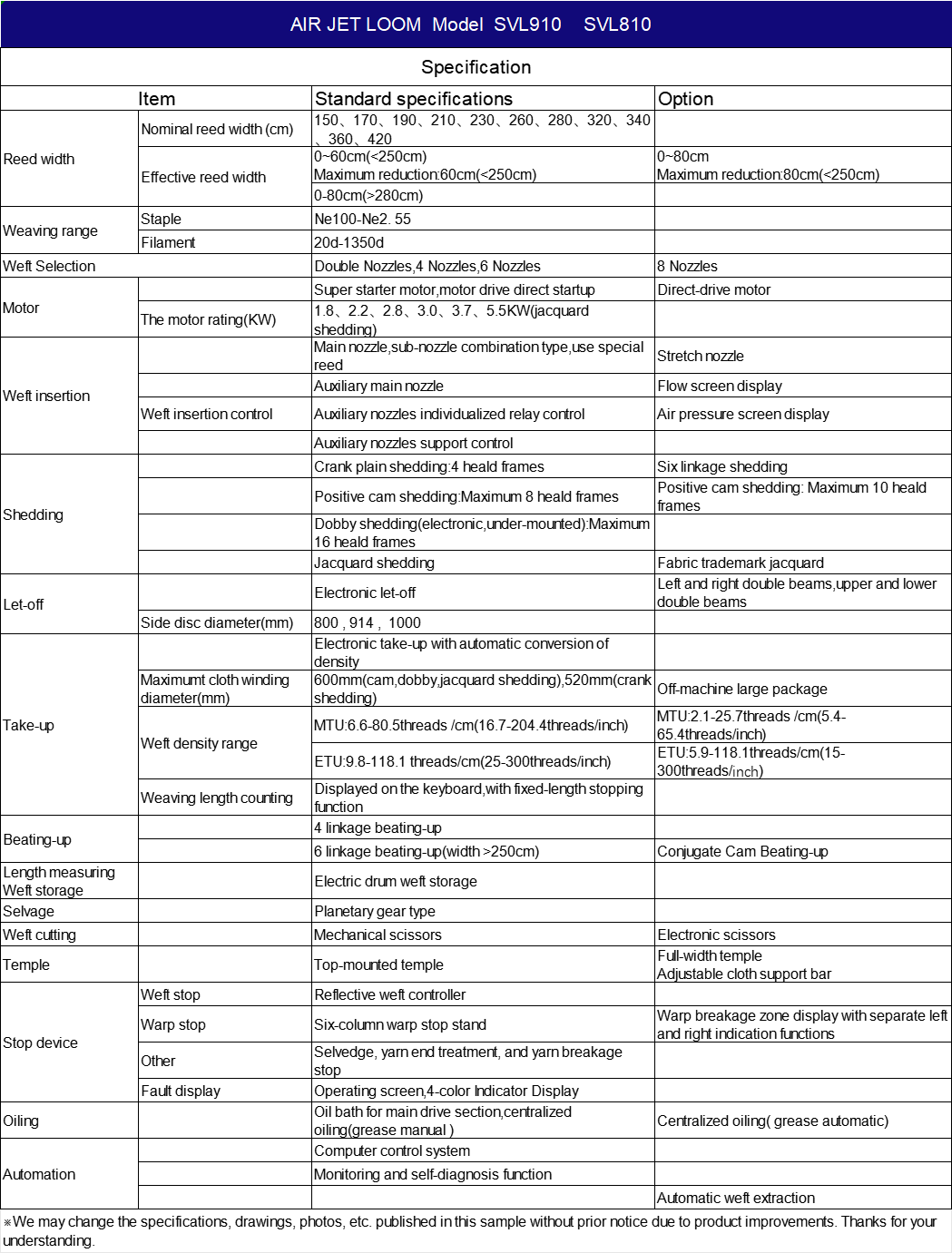 1.SVL910 air-jet loom,the design compact structure,convenient user operations.
